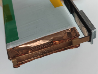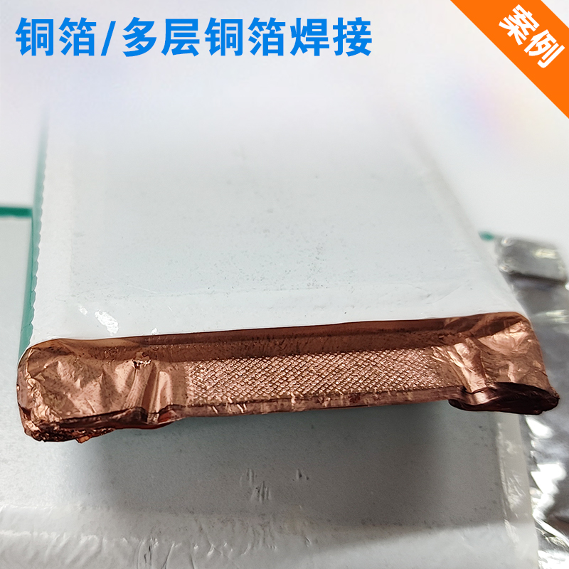 (一):鋰電池多層銅箔/鋁箔極耳焊接 (二):焊接后表層箔材外觀無破損 (三):180°撕拉力>50N,殘留面積>70%